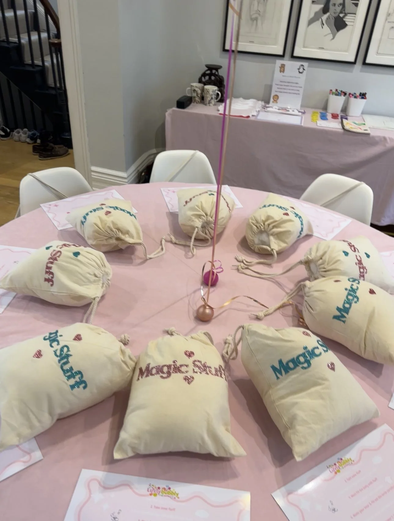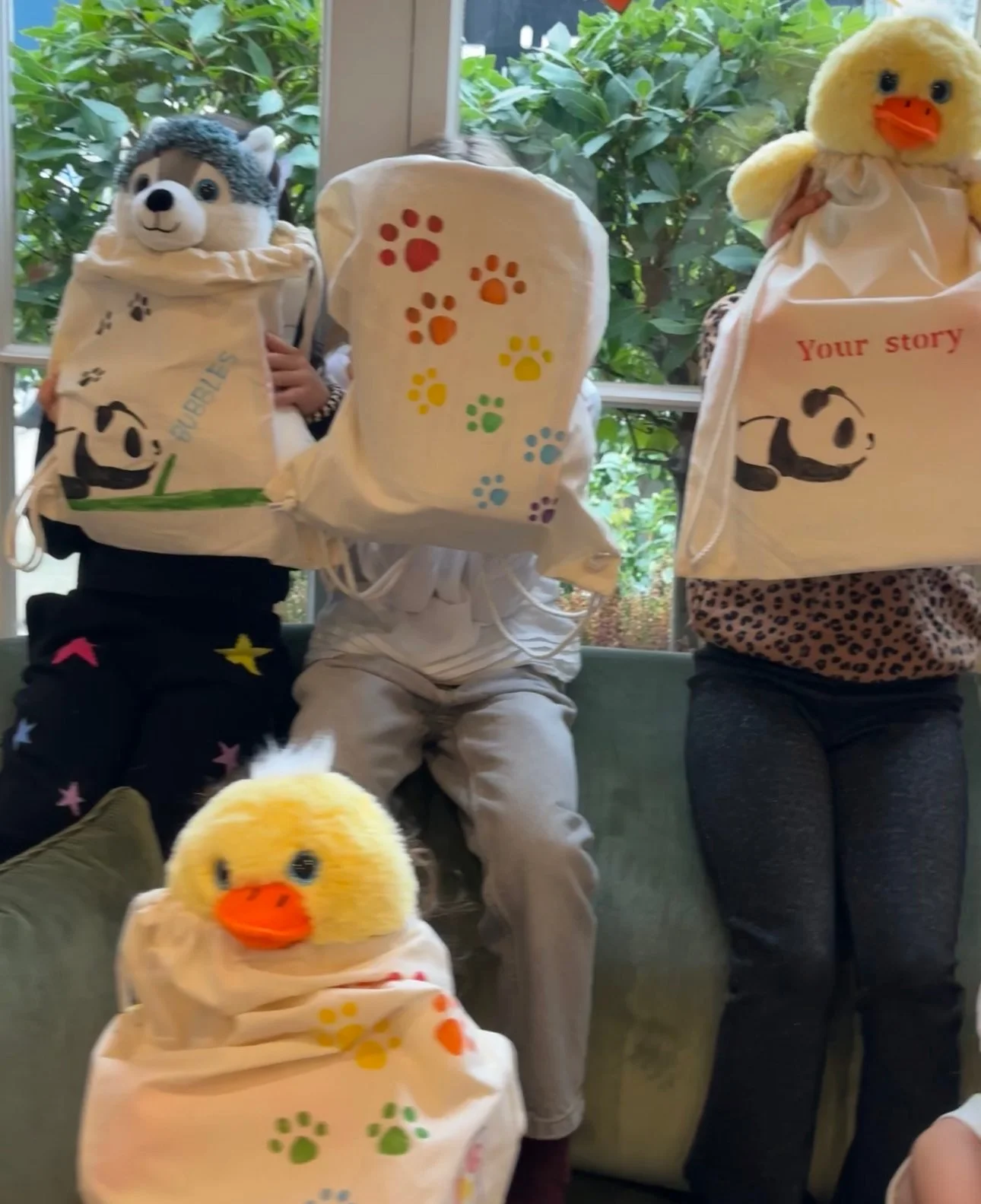 The fun doesn’t stop at T-shirts! Children also design beautiful fabric bags to carry their new companions home. Watching their creativity shine through as they add unique designs is one of the highlights of our parties.